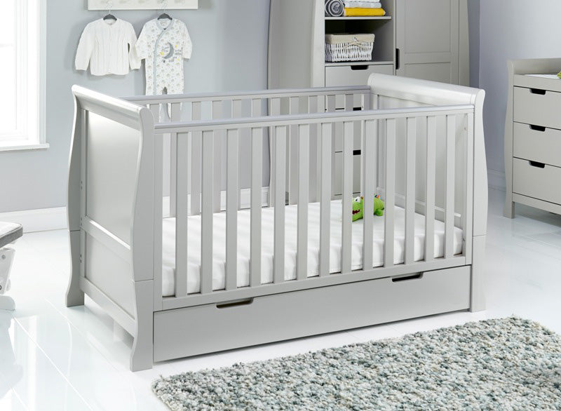 The Obaby Stamford furniture range offers families the perfect combination of style, quality and practicality. At the heart of the range is the beautiful Stamford Classic sleigh cot bed, with its elegant sleigh design offering traditional styling with a contemporary finish.