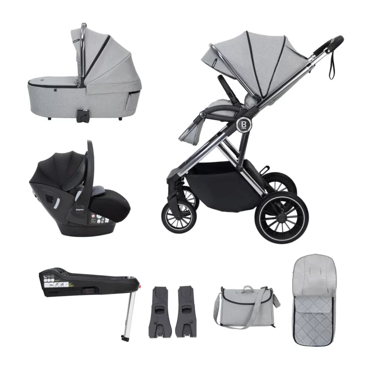 - Includes chassis frame, carrycot, seat unit, Pecan i-Size infant car seat, Isofix base, car seat adaptors, footmuff, changing bag and raincover.