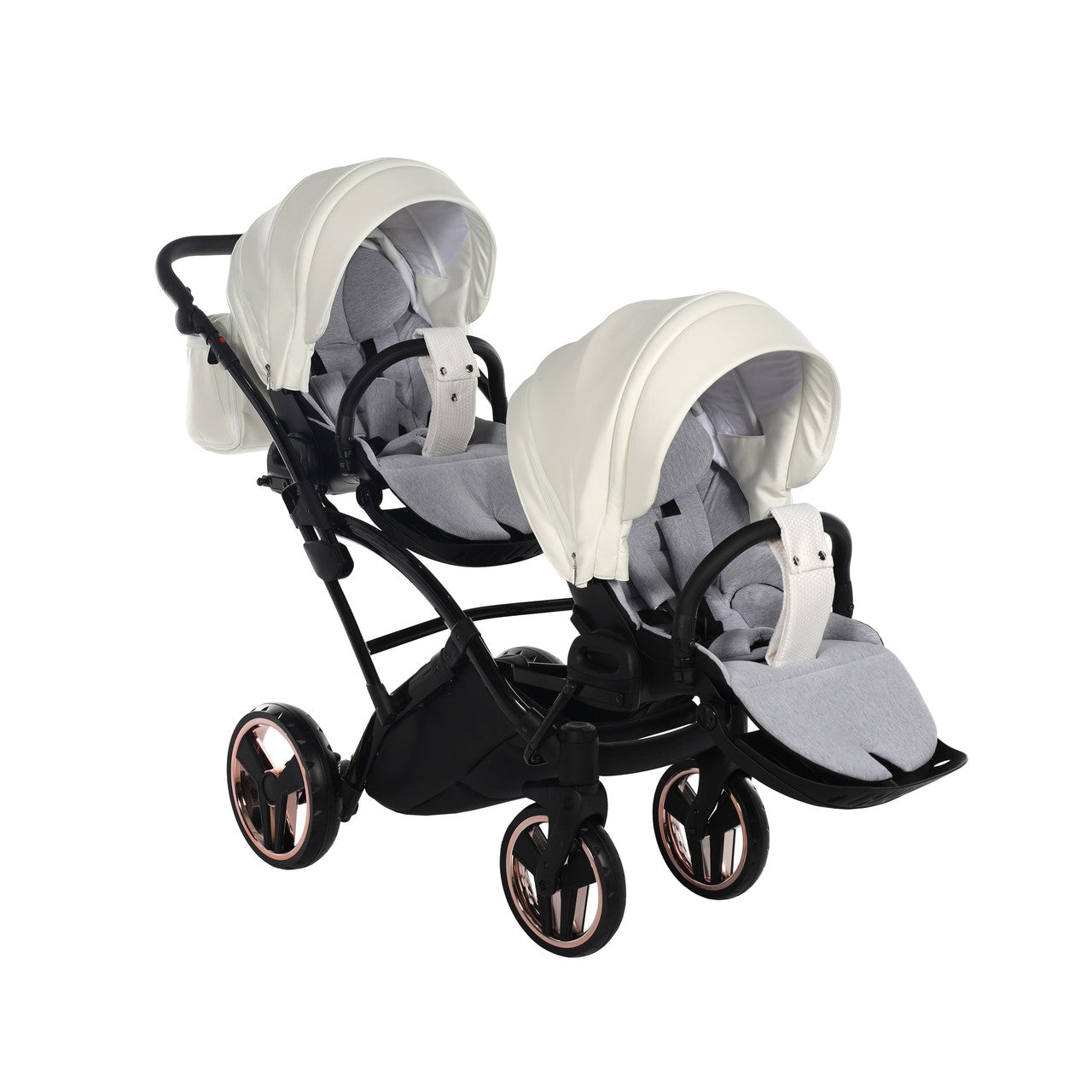 Double the happiness, double the joy and pride but also double the responsibilities and challenges. In order to meet the expectations of parents with twins, we have developed two models of twin strollers. The Duo Slim has been constructed in such a way that children can sit one behind the other, whereas the duo model allows children to sit next to each other.