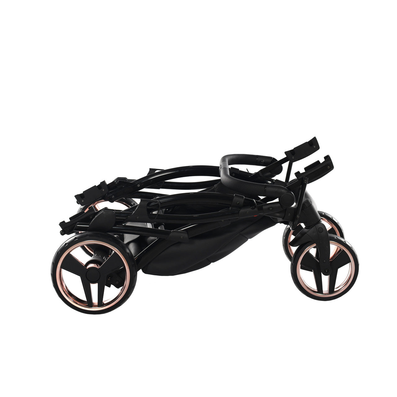 The aluminium chassis comes with superb suspension, large shopping basket and quick release wheels. Engineered with 6 shock breakers which make the pram extra comfortable and smooth. The reliable front suspension release system absorbs shocks from the ground and frontal blows, for example when hitting the curb.