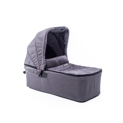 Easy Twin Second Carrycot in grey with padded mattress, adjustable hood, and carry handles for newborns up to 9kg.