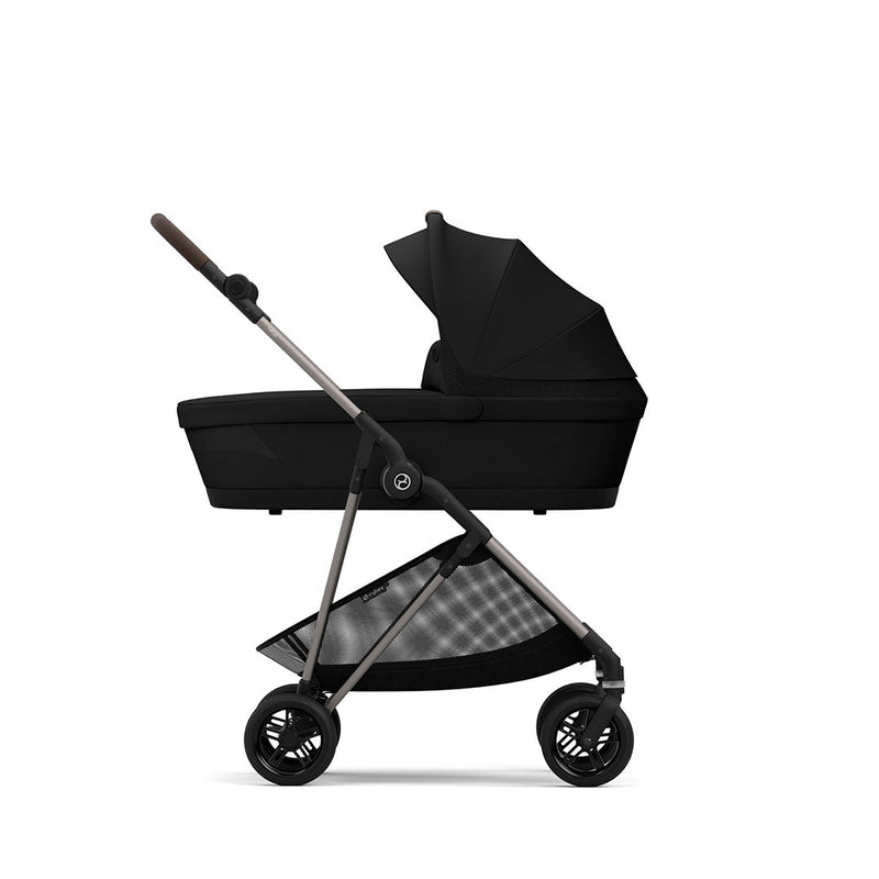 The CYBEX Melio Cot 2023 in Moon Black combines luxurious style, cosy warmth and ergonomic comfort ensuring your little one is sure to rest easy in their new home away from home. The large design gives them plenty of space to stretch and explore while remaining sheltered and safe. A soft foam mattress allows for ultimate relaxation, along with the UPF50+ sun canopy with an integrated carry handle providing protection on hot city days. Plus, with a mesh window that brings cooling breezes in, you don't have to worry about your little one staying nice and comfy while they toddle around town — making it the perfect companion for our luxuriously comfortable lightweight pushchairs also designed for urban living.