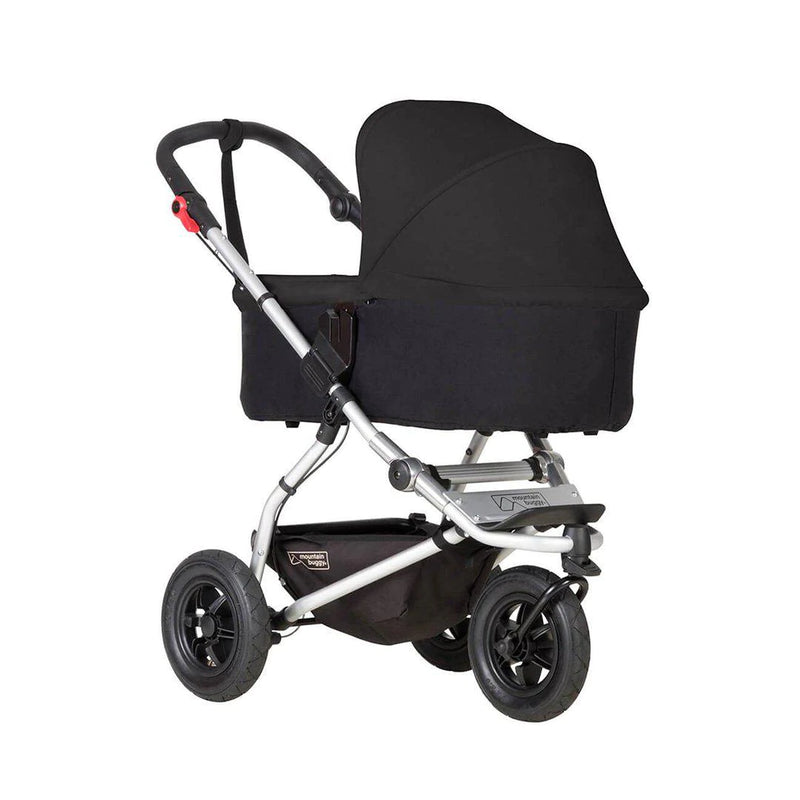 The Mountain Buggy Swift + Mini Carrycot Plus (2018+) in Black offers a spacious lie-flat carrycot for baby on or off the pushchair. With a comfy, safe mattress to sleep on, you can use the carrycot in 3 different parent facing positions: lie flat for newborn babies, incline mode which is perfect for babies suffering reflux and a parent facing seat (switching the fabric set).