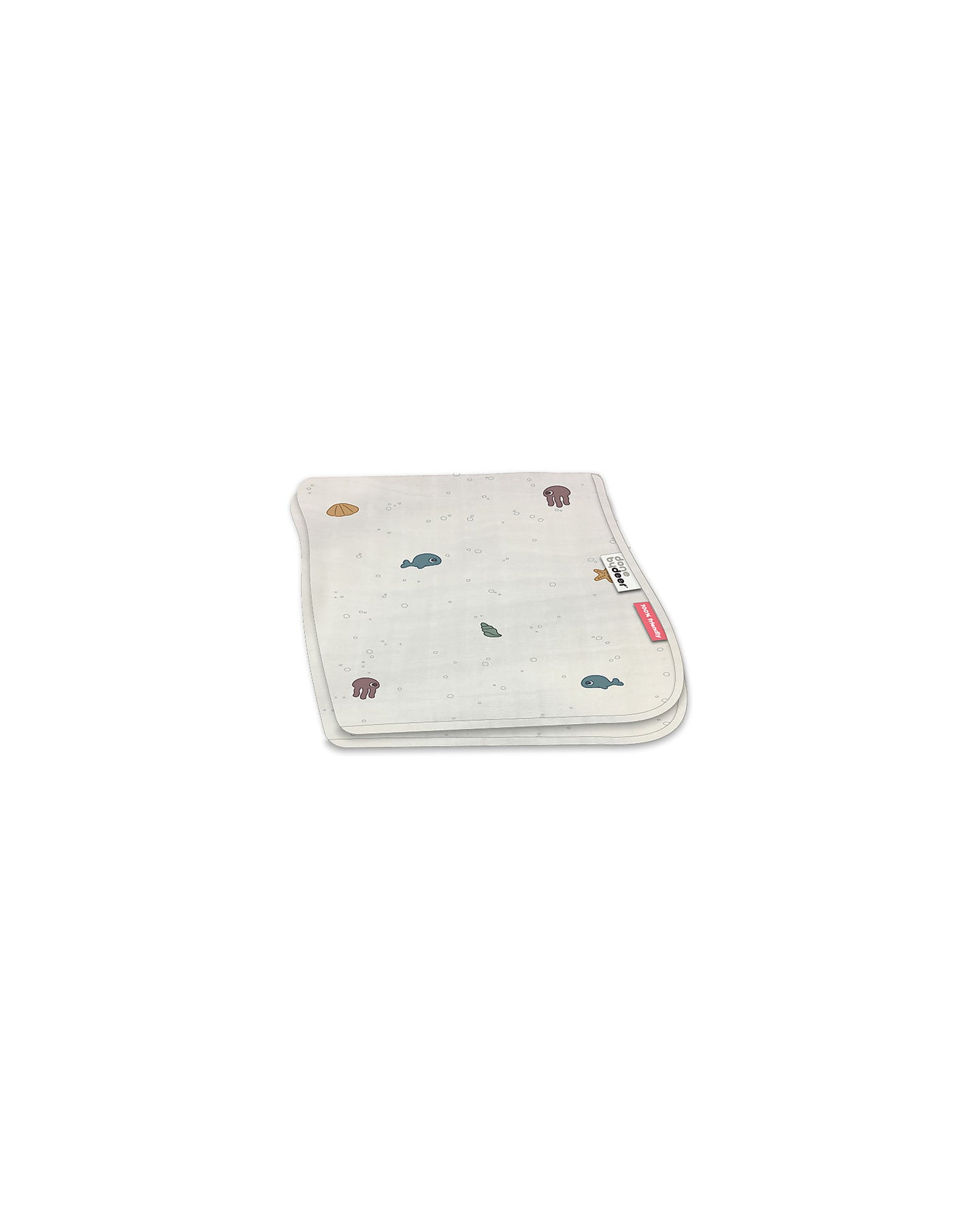 The beige Sea friends baby blanket in muslin is a soft and lightweight swaddle blanket made from organic GOTS-certified cotton. By wrapping your baby in a soft Baby blanket you give the child the feeling of comfort and tranquility.