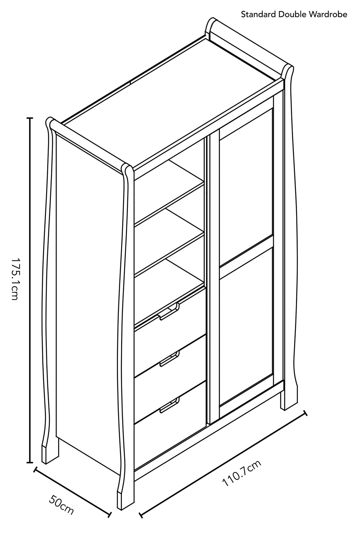 The quality of the Stamford double wardrobe’s design is complimented perfectly by the generous storage options available. A full height, soft close door encloses the main cupboard section with two hanging rails and, for the smaller belongings, the left-hand side of the wardrobe is divided between three height adjustable shelves and three spacious 21L capacity drawers.