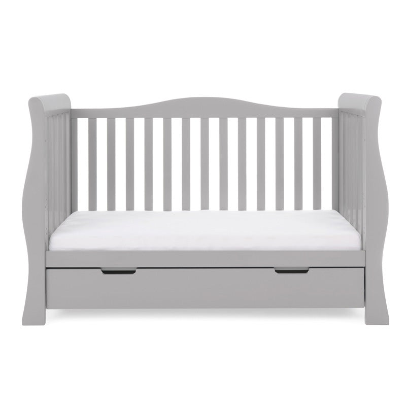 The Obaby Stamford furniture range offers families the perfect combination of style, quality and practicality. The Stamford Luxe 2 piece room set consists of the beautiful Stamford Luxe cot bed with under drawer and closed changing unit. Both pieces feature the same elegant sleigh design that flows throughout the Stamford range.