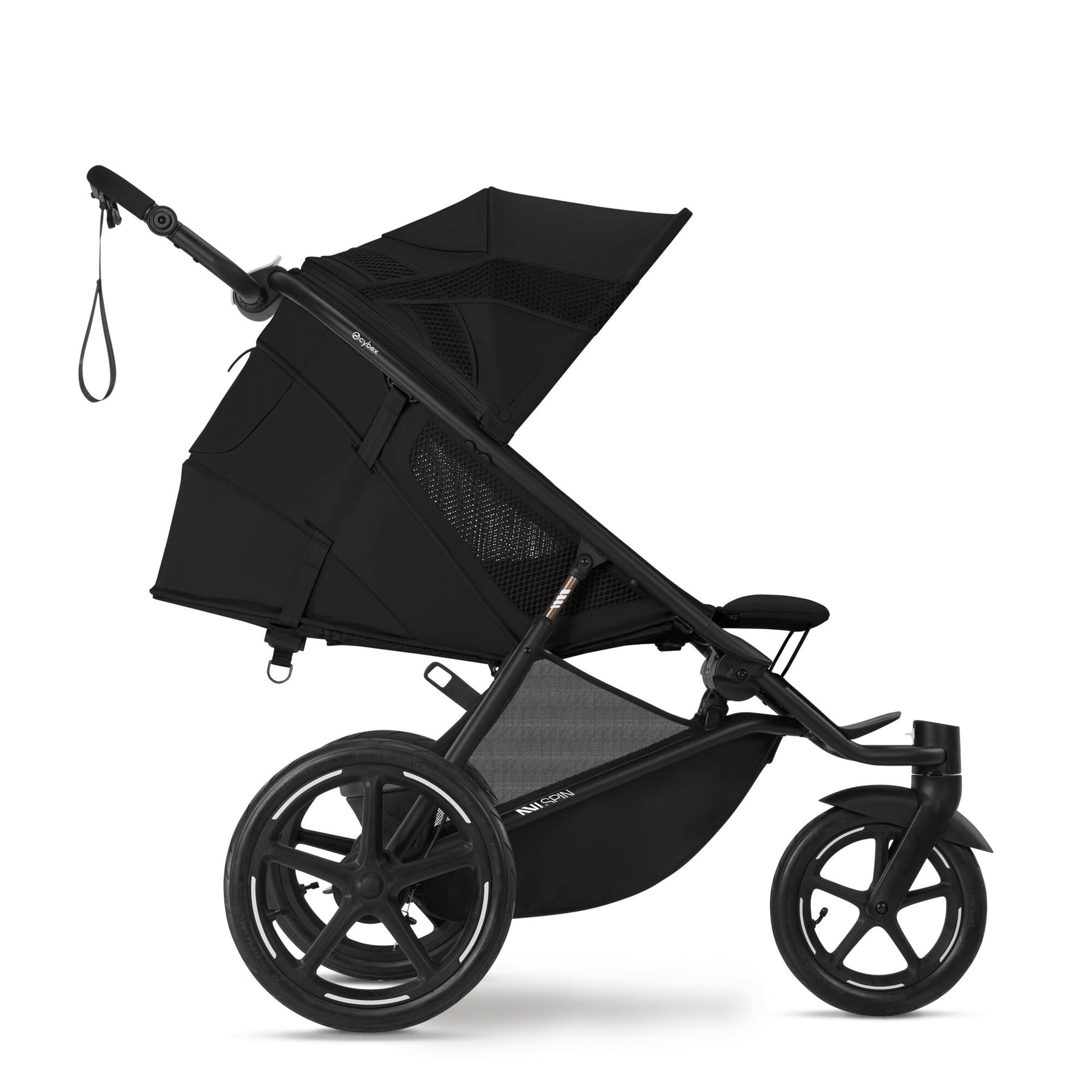 The Cybex Avi Spin 2024 in Moon Black is the ultimate city, all-terrain and running stroller. It features a front swivel wheel for manoeuvrability, air-filled tyres that promise comfort, and an ergonomic lie-flat position lets you use it from birth.