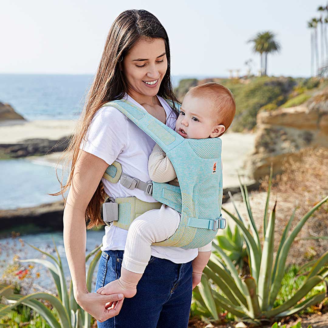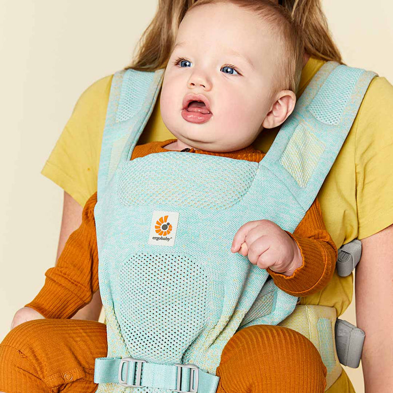 The Ergobaby Aerloom Baby Carrier in Sunburst is made to move, stretch, and fit your daily life. This first-of-its-kind ultra-light carrier redefines comfort with built-in airflow and super comfy FormaKnit™ fabric, which moulds to the contours of your body and to your baby's bum for a supported, ergonomic seat.