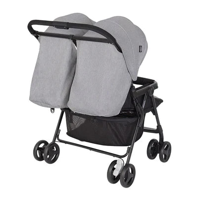 - Double pushchair is suitable for each child from birth to approx. 3 years (max. 15kg per child)
