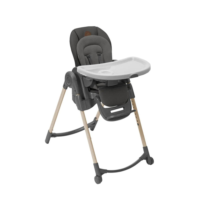 The Maxi-Cosi Minla Beyond Eco Highchair in Beyond Graphite is a fully adjustable high chair to make your life easier. With five recline positions and nine different height options, the Minla can be used from birth to 14 years old. First as a reclined infant seat with its cosy inlay, then as the months and years go by, you can use it as a highchair, a booster seat and then finally as a stool to sit at the family table.