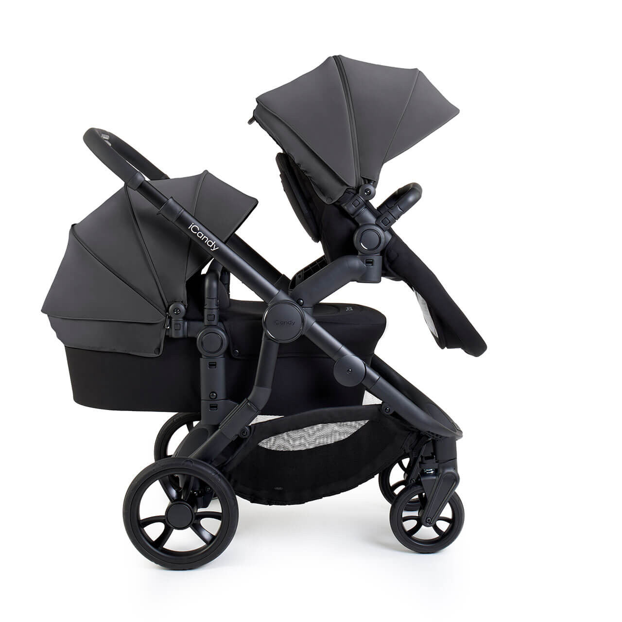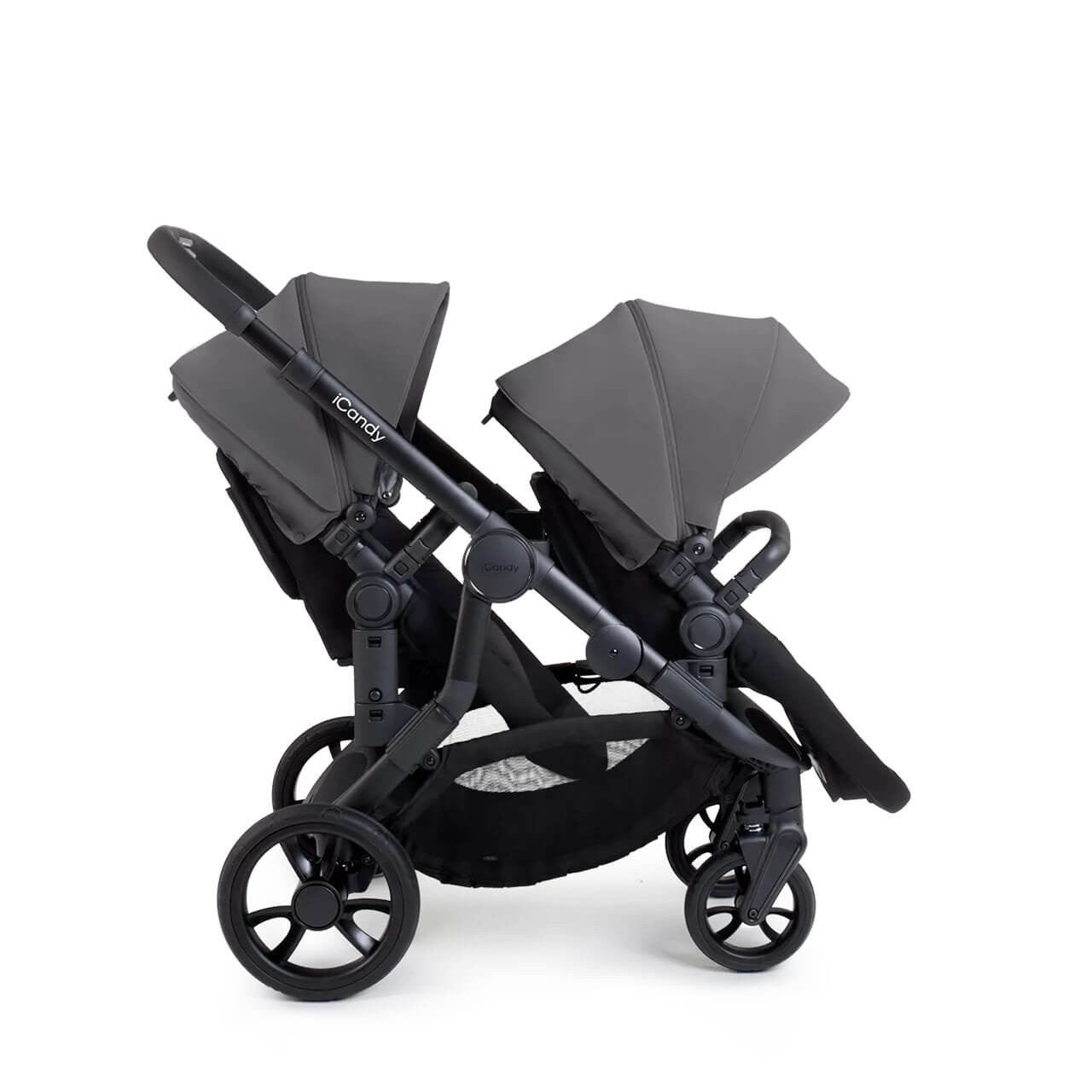 The iCandy Orange 4 Double set comes complete with pack of quality accessories including elegant black changing tote, two duo pod footmuffs, two raincovers, car seat adaptors & height elevators .