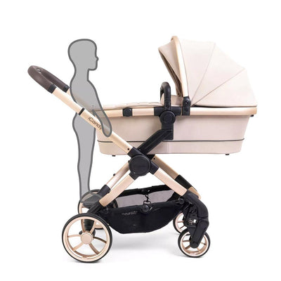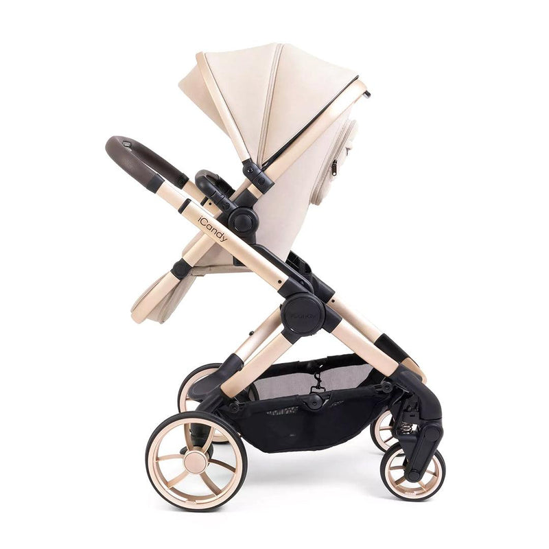 The iCandy Peach 7 Pushchair & Carrycot in Biscotti is the ultimate luxury single-to-double pushchair for first-time parents, designed for comfort and style. Suitable from birth with a spacious carrycot for overnight sleeping, it features premium knitted jersey fabrics.