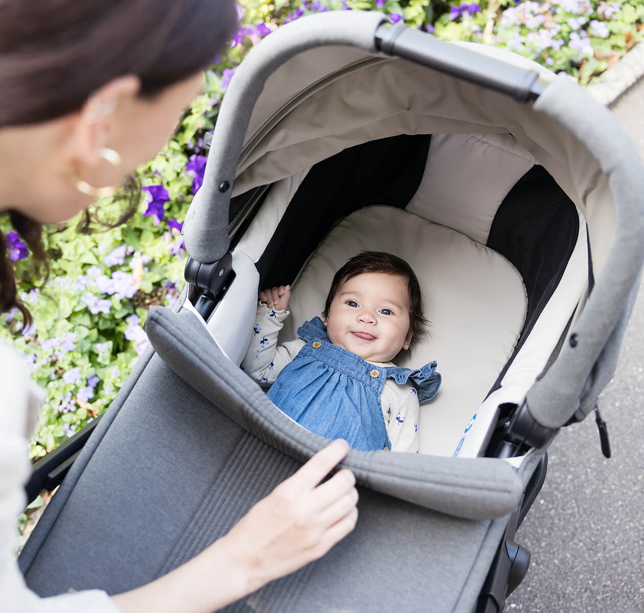 - UPF 50+ canopy keeps the sunshine at bay the smart way and retracts for easy access to baby