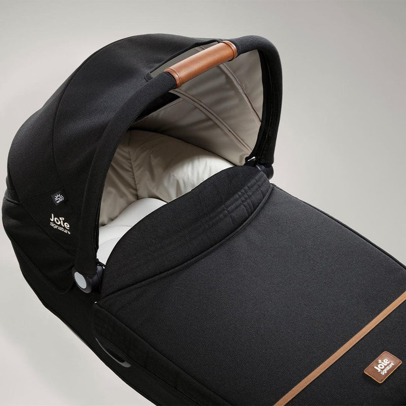 The Joie Signature Calmi Car Seat in Eclipse is designed to guarantee the best sleep for your baby while you’re on the go, this deluxe R129 certified car cot couples the security of a car seat with the cosiness of a carrycot. Guiding your baby to lie flat in a cushioned oasis, their head will be situated in the safest point within the vehicle and furthest from the rear doors. This innovative 180c lie-flat car cot is created with comfort in mind and provides excellent oxygen flow so that your baby can nap while you travel without any disruptions. For uber safety, convenience and style, hook up this Joie Signature Calmi with any compatible Joie pushchair or stroller; Maxi-Cosi adapters also enable connection to other brands of strollers as well. With chic yet customisable features, taking your baby out has never been safer and cosier.