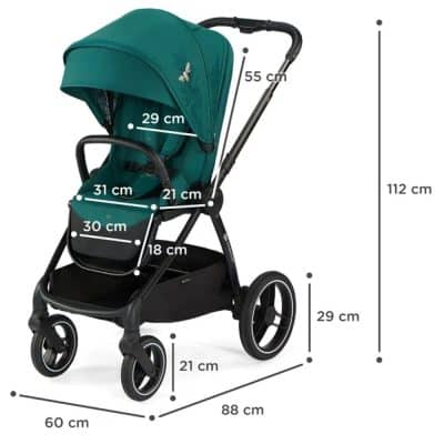 Kinderkraft NEA Pram Nature Vibes has a slim design, good manoeuvrability, and excellent shock absorption. Its large wheels (which do not need to be inflated) mean the NEA can easily negotiate high kerbs and bumpy city pavements. This pushchair has a large carrycot, a stroller with a reclining seat, and a wide range of adjustments. The NEA stroller easily folds up with the seat facing both forwards and backwards.
