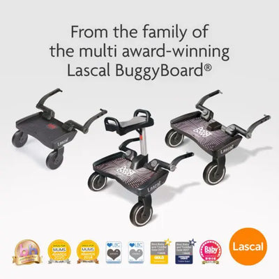 Walking at your toddlers pace, especially when they’re tired, is not an ideal situation! The Lascal Maxi BuggyBoard is the smart, user-friendly, universal solution for giving tired toddlers a safe and practical lift, designed for kids 2 – 6 years old. Compatible with the Saddle, if your child wants the option for a seat.