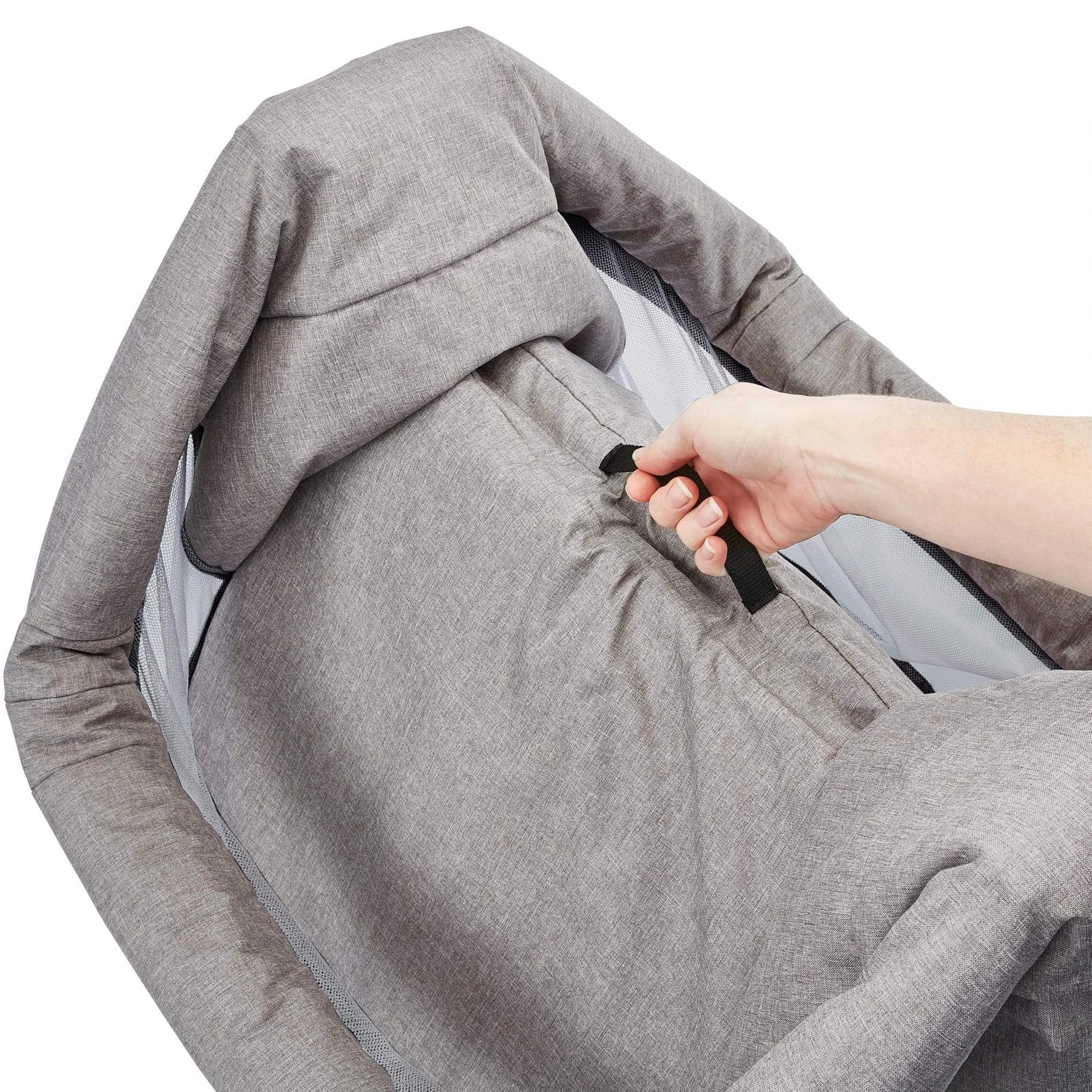 - One-hand compact fold with carry handle allows the crib to be used as a mosses basket around the house, portable travel cot away from home or on holiday, or stand-alone bedside crib.
