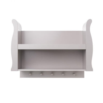 Its two-shelf construction offers plenty of space for your little one’s precious keepsakes, with the top shelf featuring a front lip for belongings extra safe. 5 wooden hanging pegs beneath the shelf providing extra hanging space for regularly used items. The Stamford shelf maintains the same elegant sleigh design as the rest of the Stamford range making it the perfect finishing touch to any nursery.