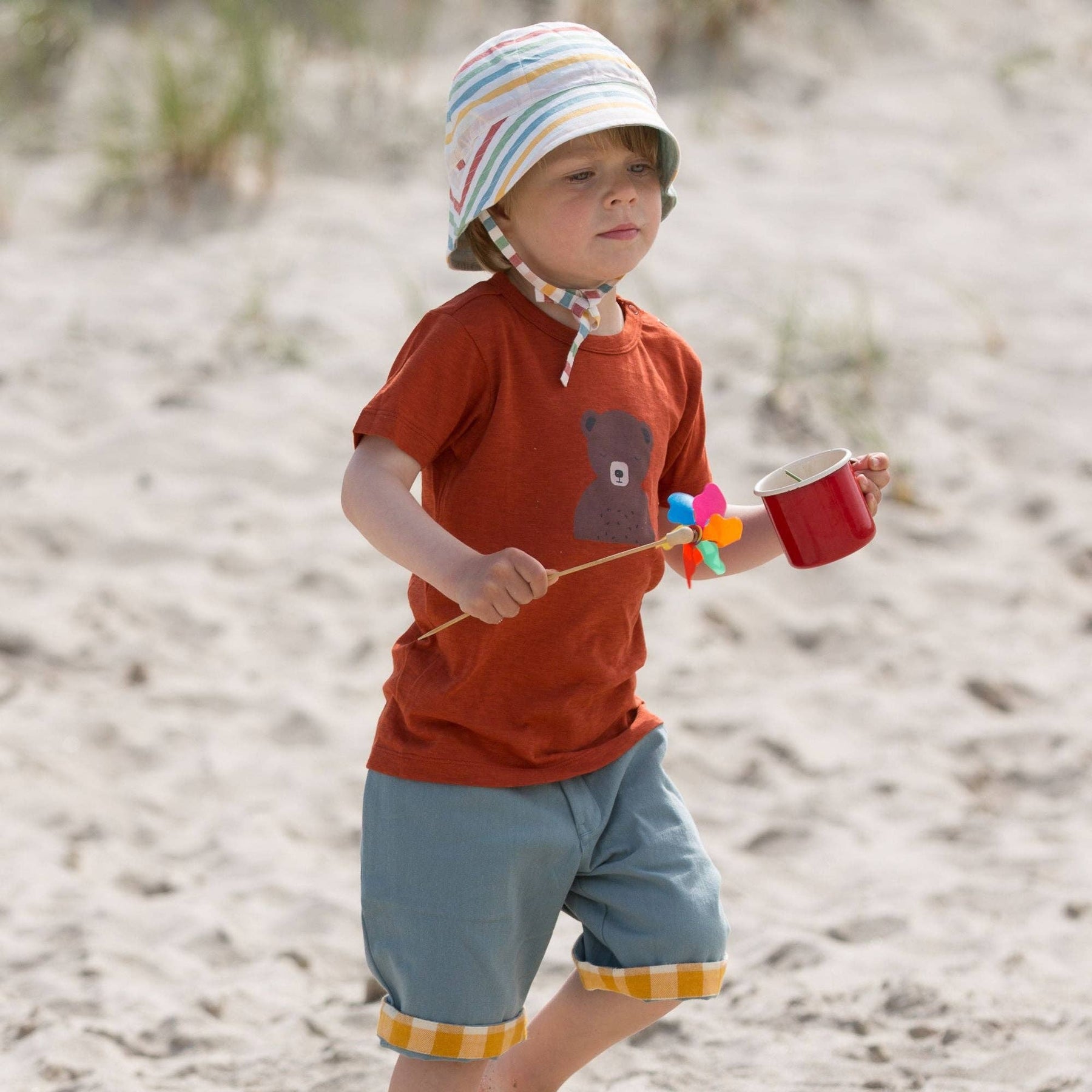 100% Organic & Fairtrade Slub Jersey Cotton 2nd Drop (Summer Collection) - March Delivery Beautifully soft and comfy to wear, this might just be their new favourite t-shirt! It comes with a colourful print, poppers on one shoulder for fuss-free dressing and is made from light and breathable organic cotton fabric that will keep them cool all summer long. Pair with our shorts for an adventure-ready outfit. Extra Details: - Classic fit with crew neck, plus nickel free poppers on one shoulder for easy dressing - Made from light & airy, super soft 100% organic cotton - Printed with water-based inks - Plain colour, unisex style to wear day after day - Machine washable