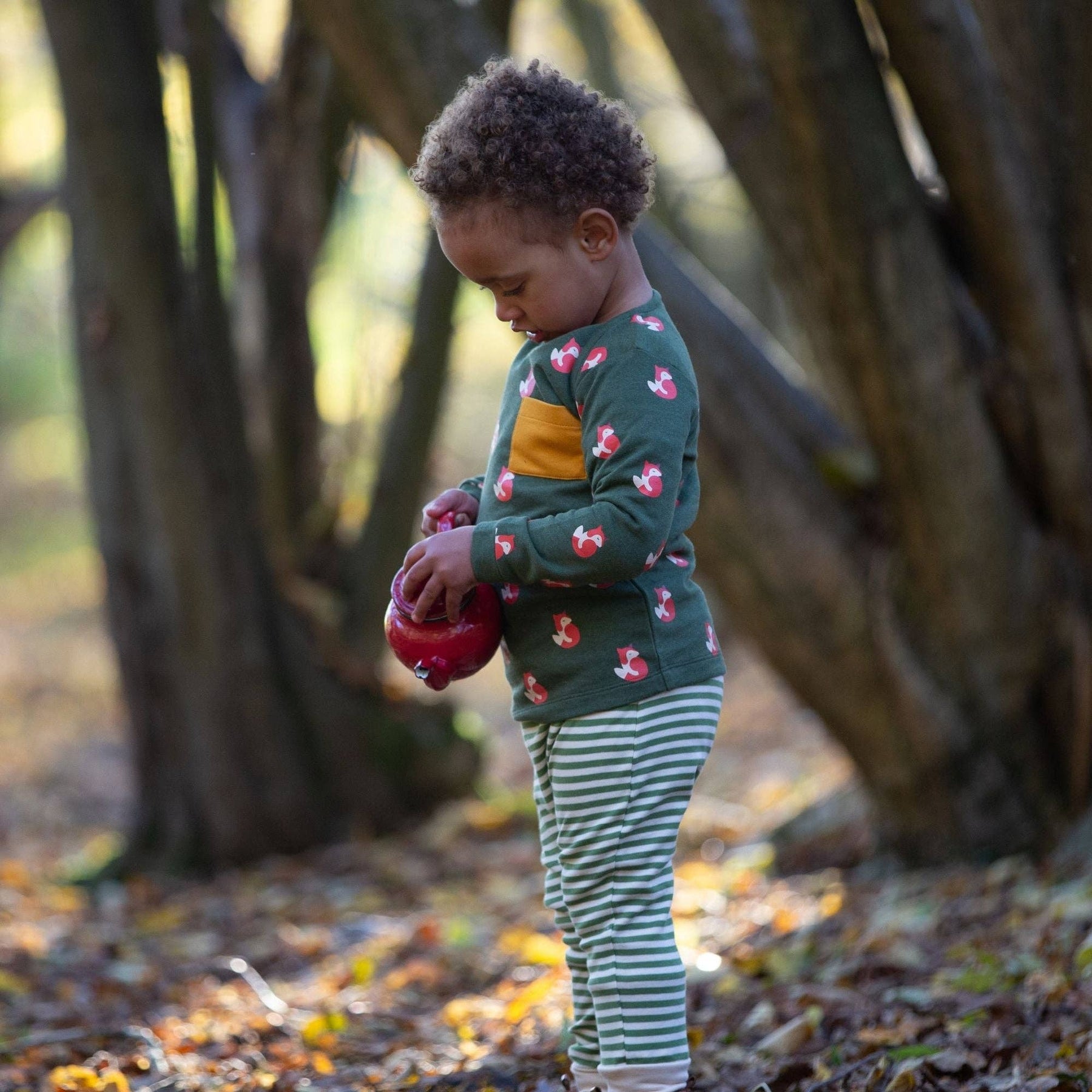 More about our Little Fox Organic T-Shirt & Jogger Playset Designed for active little ones, this set is made for everyday play indoors or out. It comes with a pair of comfy striped joggers plus a soft printed top with contrast pocket and envelope neck, so getting them dressed in the morning is that little bit easier! Extra Details: - 100% Organic & Fairtrade Interlock Cotton - Comfy striped joggers with elasticated hems, sized to fit reusable nappies - Envelope neck for easy dressing, so you can take this top off over the head or by rolling it down - Contrast pocket and neck trim - Made from 100% premium organic cotton, so it's kind and gentle on your child's skin - Unisex design for boys and girls - Machine washable