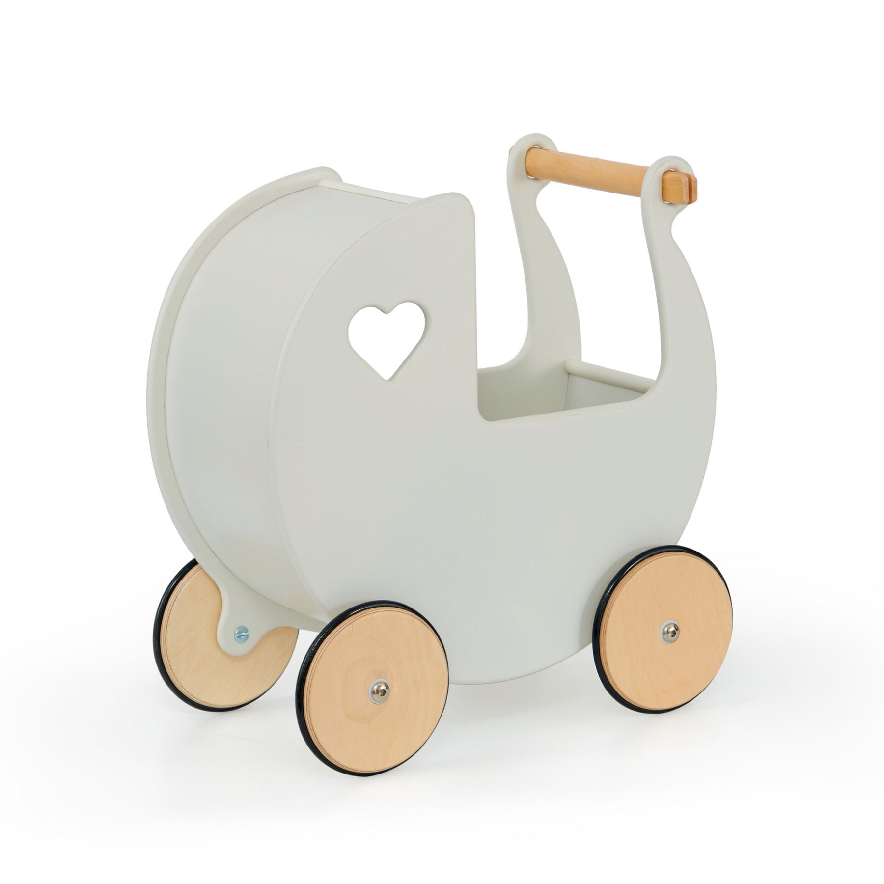 This beautiful Moover children’s wooden dolls pram is made in MDF and has wooden wheels with rubber tyres. The dolls pram is delivered assembled and ready to use.