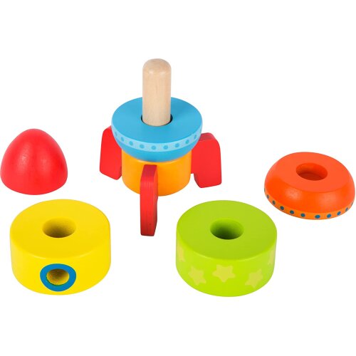 Four high-quality and lovingly painted rings and the tip can be stacked on the base to create a cute stacking tower that can also be wonderfully knocked over again!