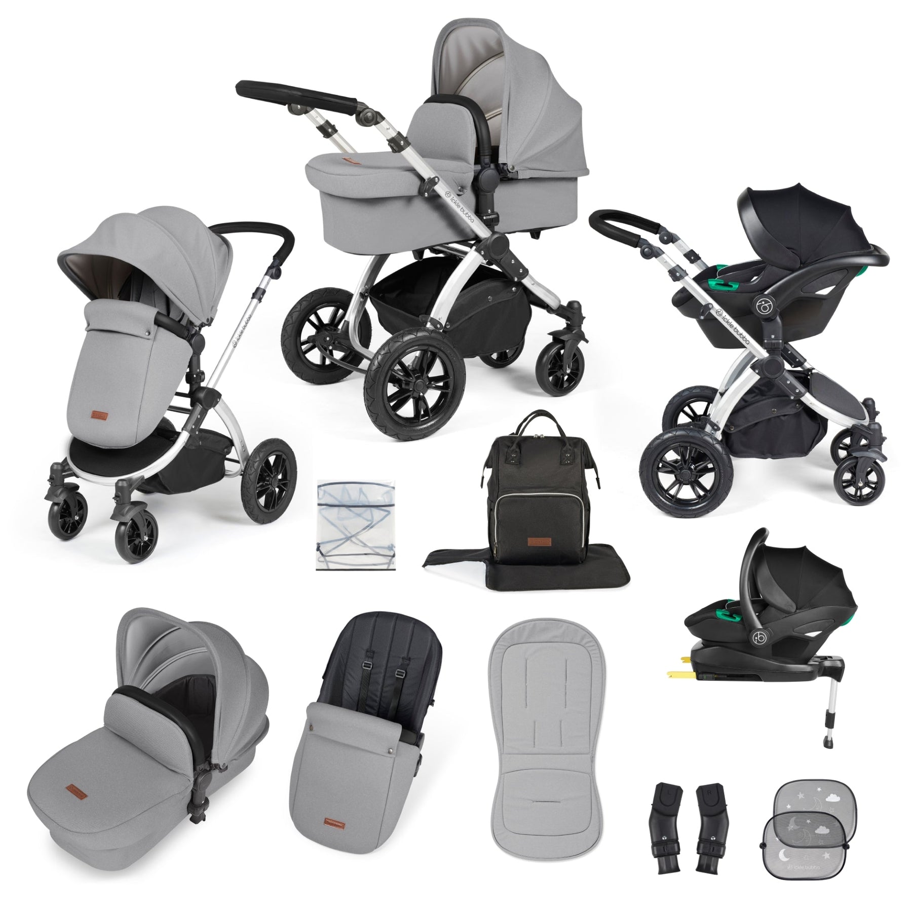 Experience luxury on every outing with the Stomp Luxe 12 Piece Travel System with i-Size Stratus Car Seat & ISOFIX Base from Ickle Bubba. This premium, all-terrain pram allows you to customize your ride with a selection of fabric and chassis colours, ensuring a travel system that perfectly matches your personal style. Explore the world in comfort and sophistication.