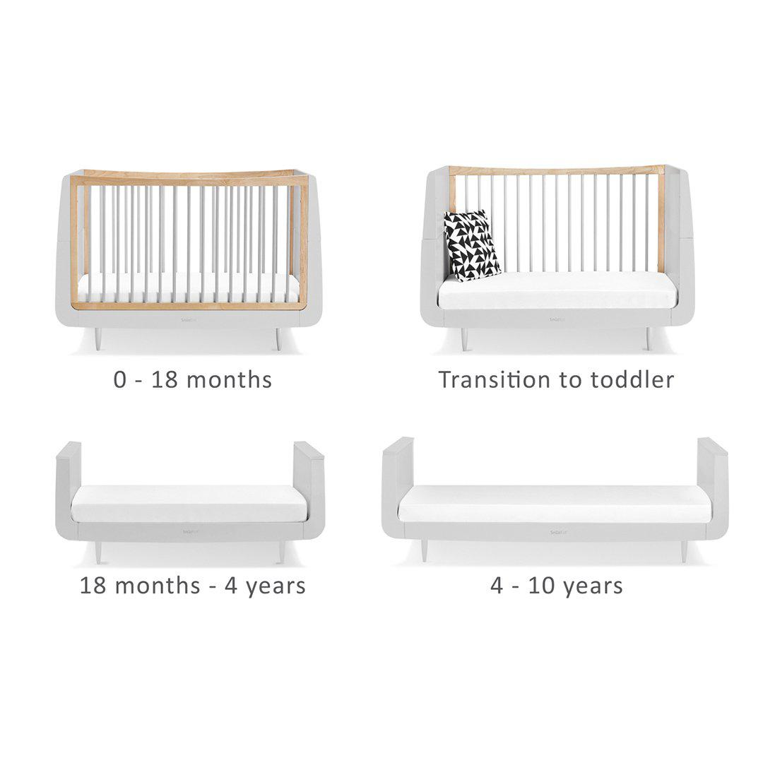 This Skandi cot bed has been designed to really last through the years, made using natural beech wood without the use of MDF or veneer.