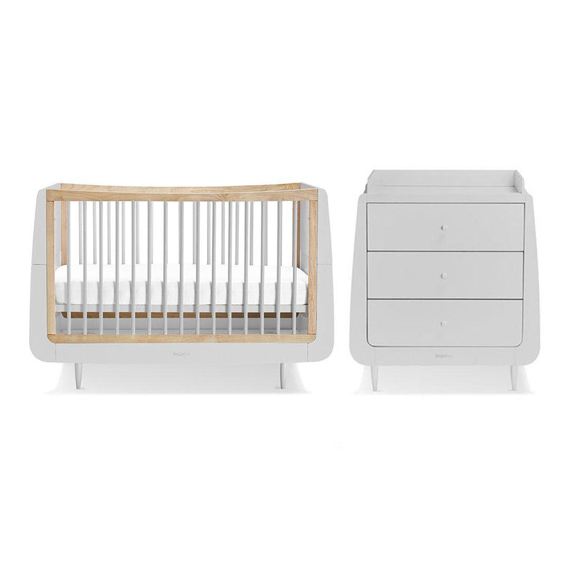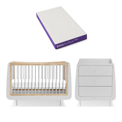 The SnuzKot Skandi 2 piece nursery furniture set in Skandi Grey has to be our favourite range from Snuz here at NBS, we love the uniqueness and boldness of the Scandinavian themed furniture. The SnuzKot Skandi 2 Piece Nursery Furniture Set in Skandi Grey features fun, eye-catching coloured slats with a natural wood inner frame while the changing unit comes with coloured legs and handles - giving it a bespoke look.