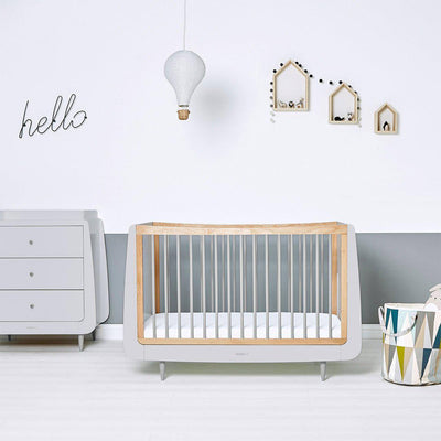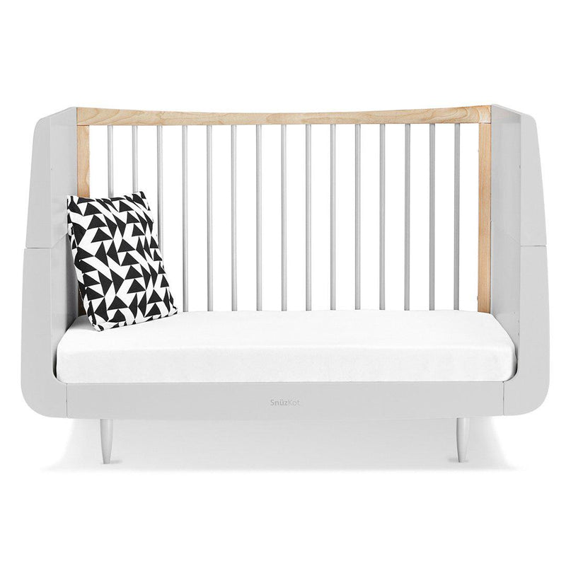 This SnuzKot Skandi Cot Bed in Skandi Grey features fun, eye-catching coloured slats with a natural wood inner frame - giving it a tailored look.