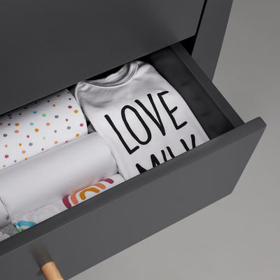 The new SnuzKot Skandi range has to be our favourite here at NBS, we just love the uniqueness and boldness of the Scandinavian themed furniture. This SnuzKot Skandi Changing Unit in Slate Natural features fun, eye-catching coloured legs and handles - giving it a bespoke look.