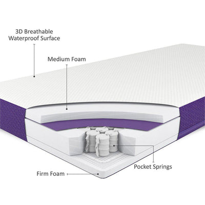 The SnuzSurface Duo Dual-Sided Cot Mattress for SnuzKot boasts an innovative 3D breathable mesh cover with a waterproof membrane, ideal for those potty training years. The Duo mattress features a sophisticated pocket sprung core, tailored to provide progressive support for baby as they grow and develop into toddlerhood.