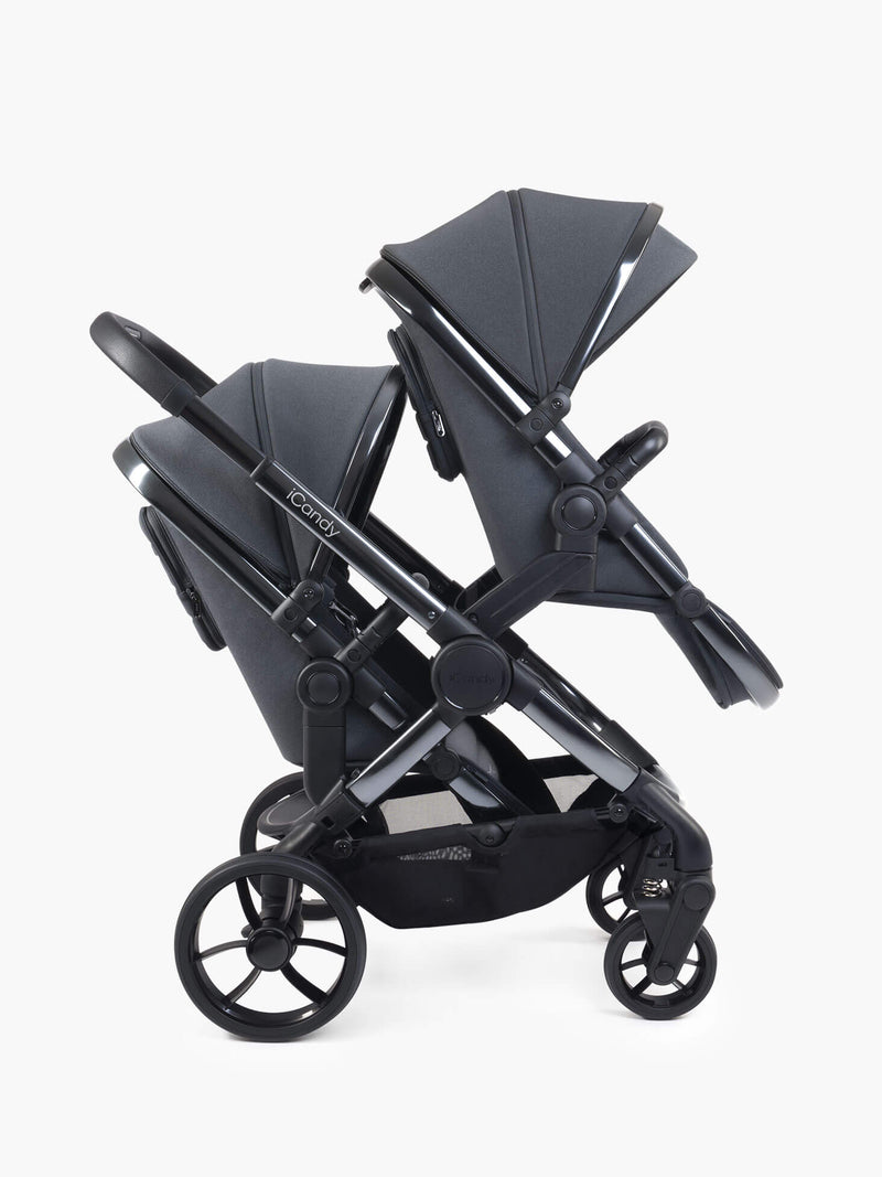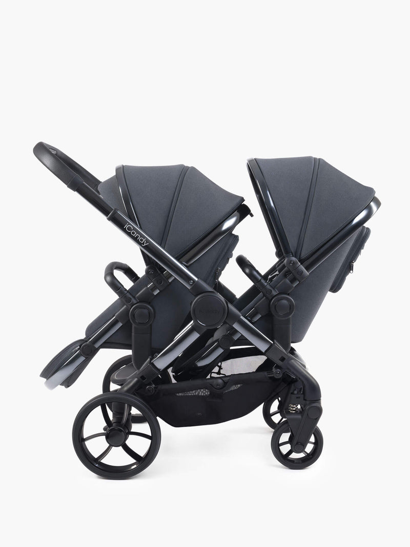 The one-handed fold, incorporated carry strap, ergonomic adjustable leatherette handlebar and swivel bumper bar all help to make getting out and about a breeze. As does the extra-large 44-litre basket with built-in drainage vent and the handy zip-off carry bag for your essentials on the back of the seat unit. This pushchair comes with car seat adaptors to allow you to attach a compatible infant car seat (purchased separately) to the frame, giving you all the convenience of a full travel system and also with iCandy's innovative elevators. These are shaped adaptors that can be used in either direction to bring your baby higher and closer to you for easier interaction on the go, or to raise the pushchair seat to perfect table height if you stop at a cafe or restaurant.