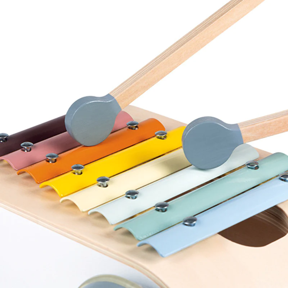Young musicians will love this pull along wooden xylophone! A 2-in-1 toy the xylophone will delight budding young musicians and the pull along toy ensures it can be taken everywhere from the time of Baby's first steps.