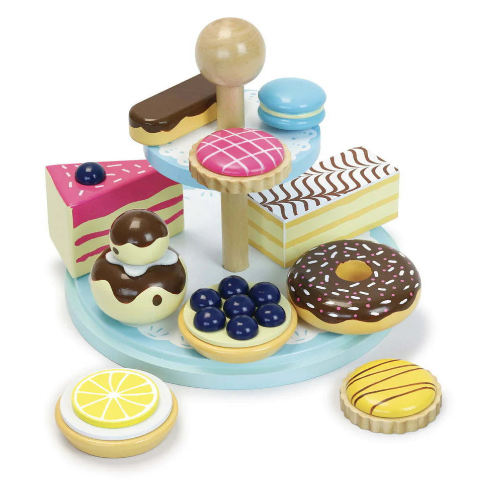 Get ready for sweet adventures and delightful playtimes with Vilac’s Wooden Pastries Set! This set is packed in a charming dessert box and comes with a wooden stand to showcase an array of cute pastries.