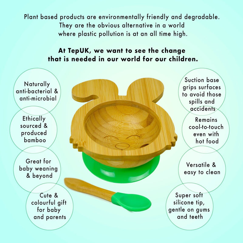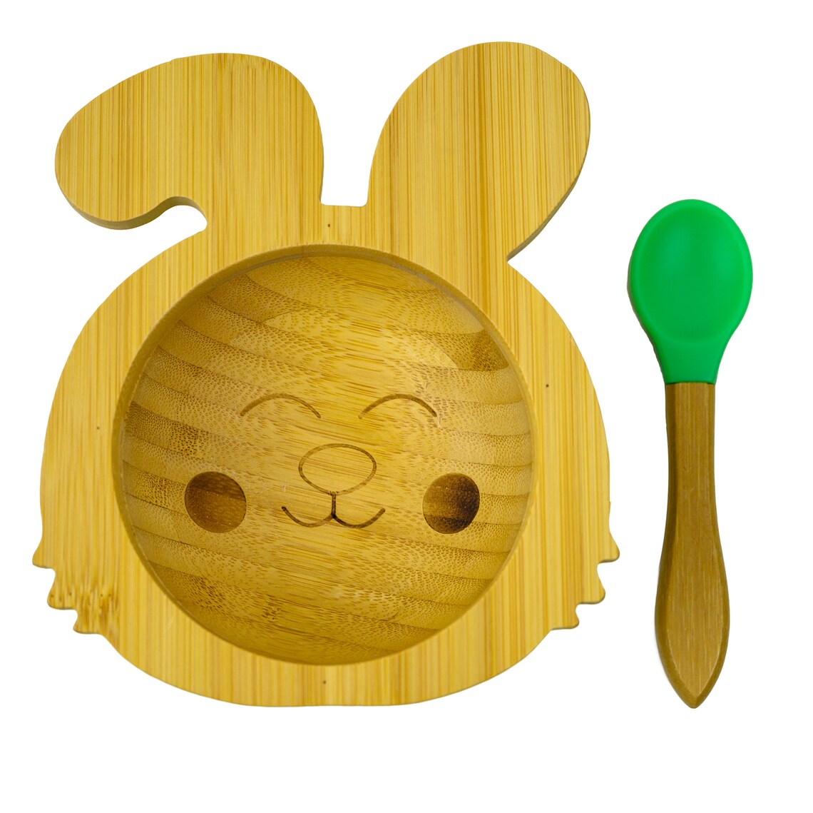 Fun & Beautiful Design - Bamboo is a beautiful product for your home and will fit in in any kitchen. It is versatile and harder than most other woods, and ideal for any meal. The little bunny face peaking through cheekily at your baby makes dinnertime fun and special.