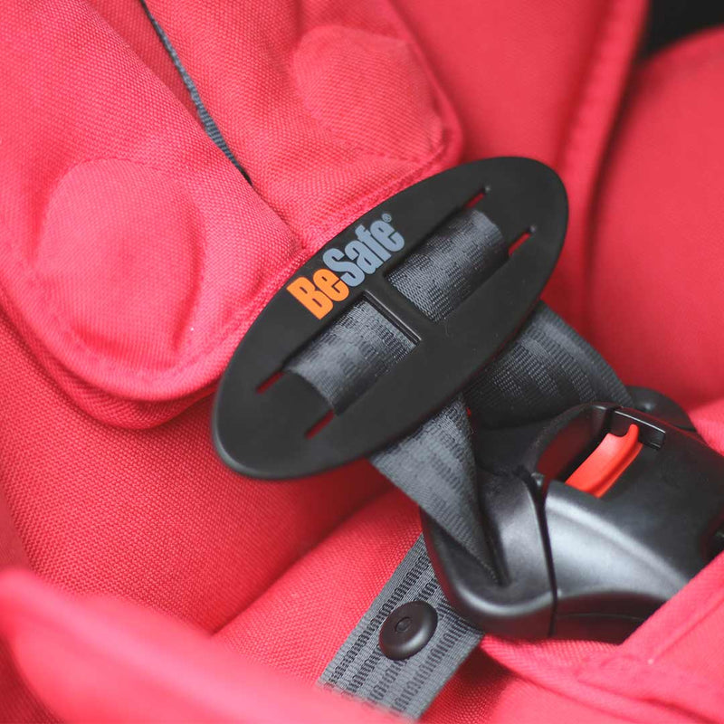 The BeSafe Belt Collector holds the shoulder belts in place at the front, simultaneously making it harder for little one's to "escape" or to slide out of the belts. This belt guard is designed to be used with Group 1 car seats, which use a harness system to restrain the child.