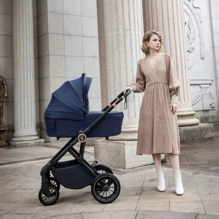 Chia pram pushchair available in Pearl Grey and Midnight Blue.