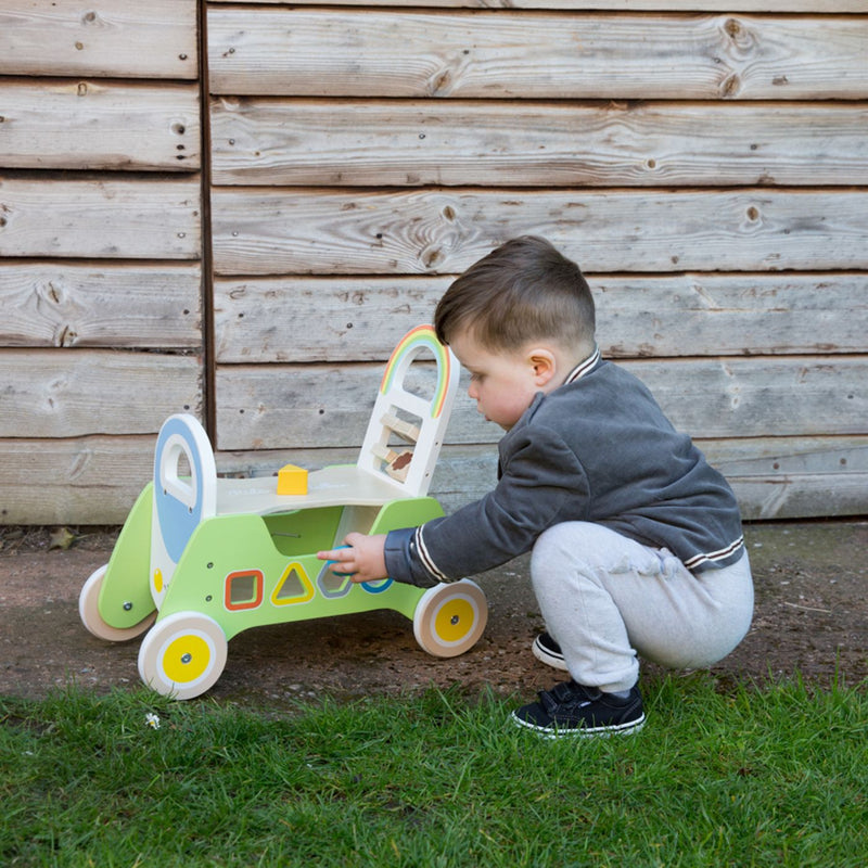 Colourful rider walker with shape sorting blocks