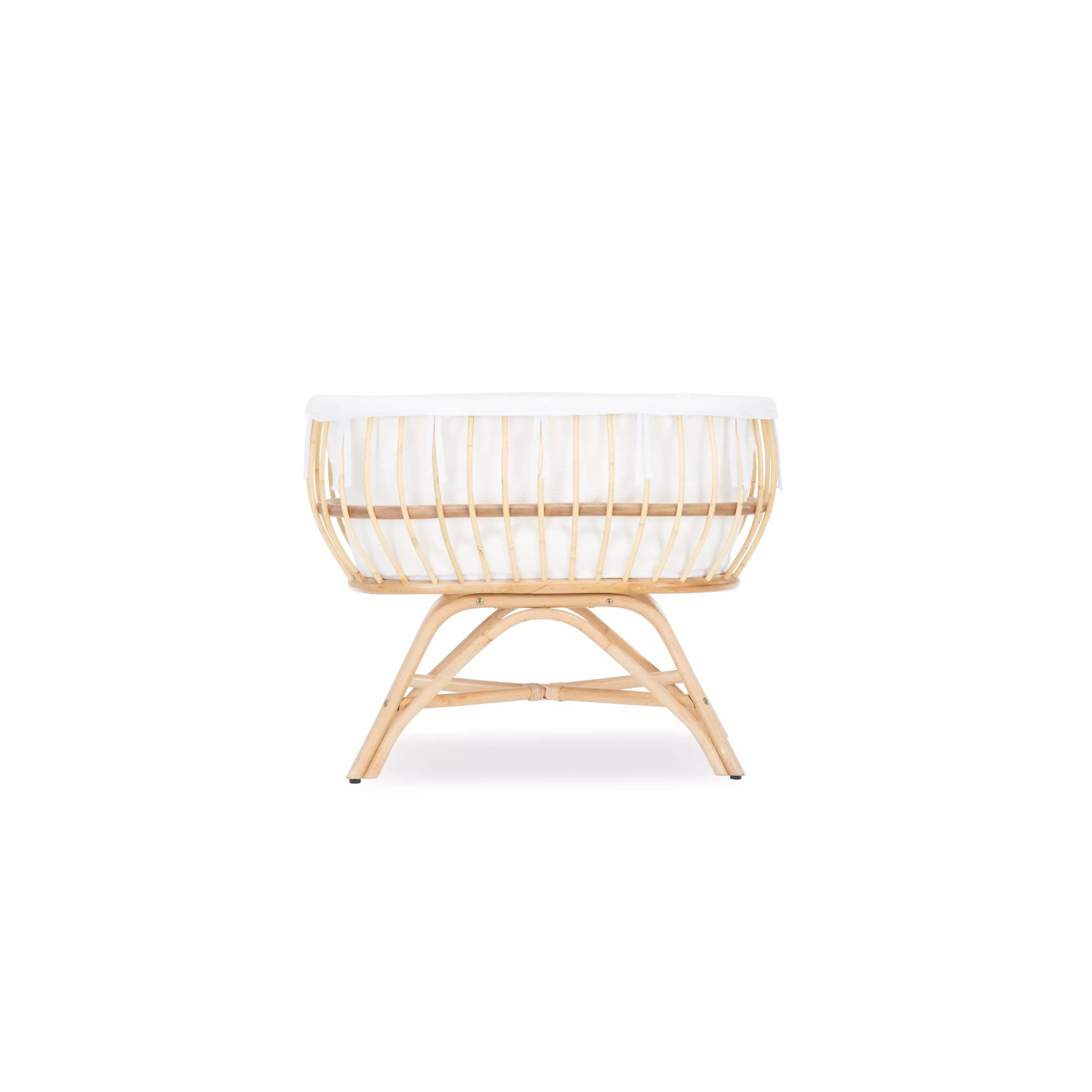 • Sturdy rattan crib with hard sidebars so baby is safe and snug.