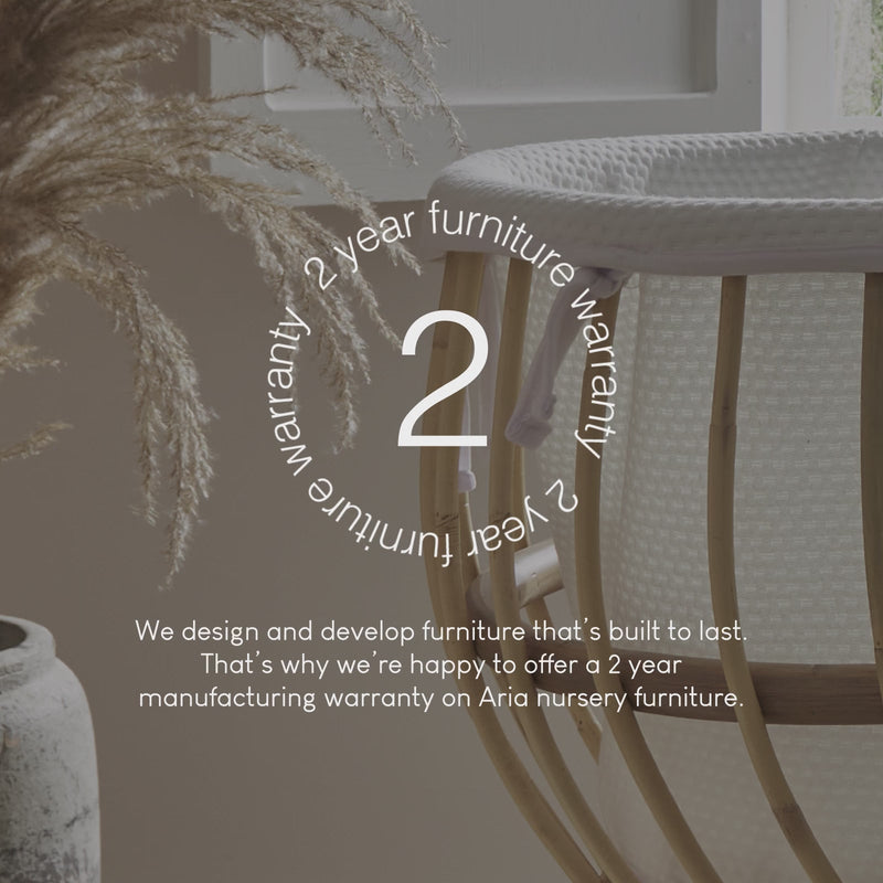Aria will look beautiful next to your bed or in the nursery. The Aria Rattan Crib comes with a foam mattress and a crib liner, containing anti-microbial properties to provide your baby with a clean, germ-free sleep environment. The mattress and liner feature a quilted fabric made with ultra-soft bamboo fibres, which help promote airflow and regulate temperature. The breathable mattress will support your baby as they sleep and grow.
