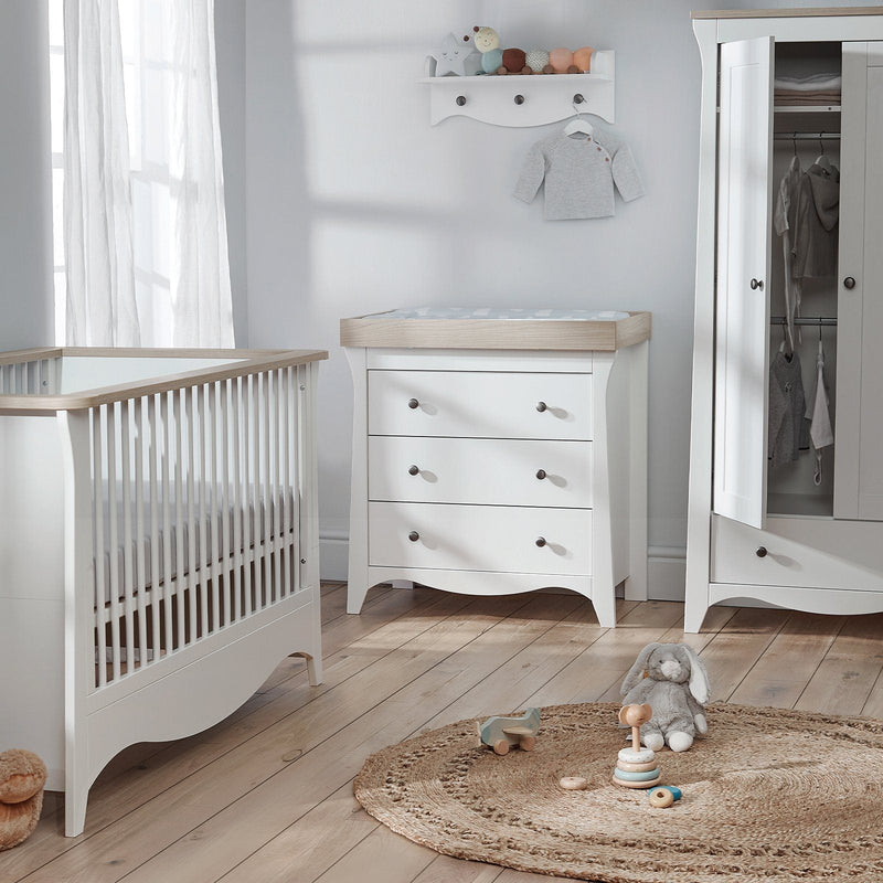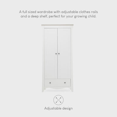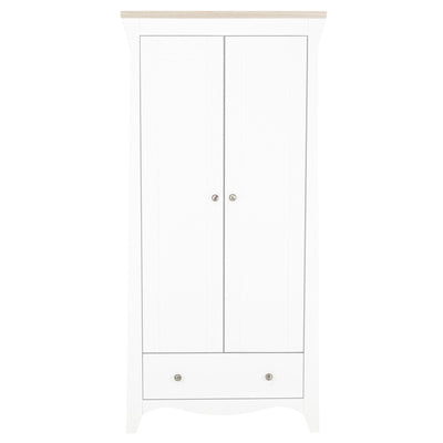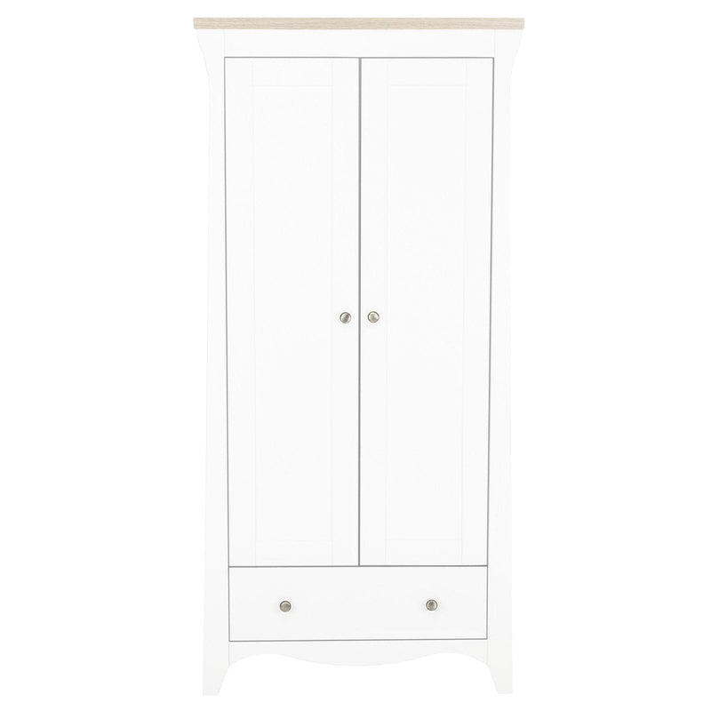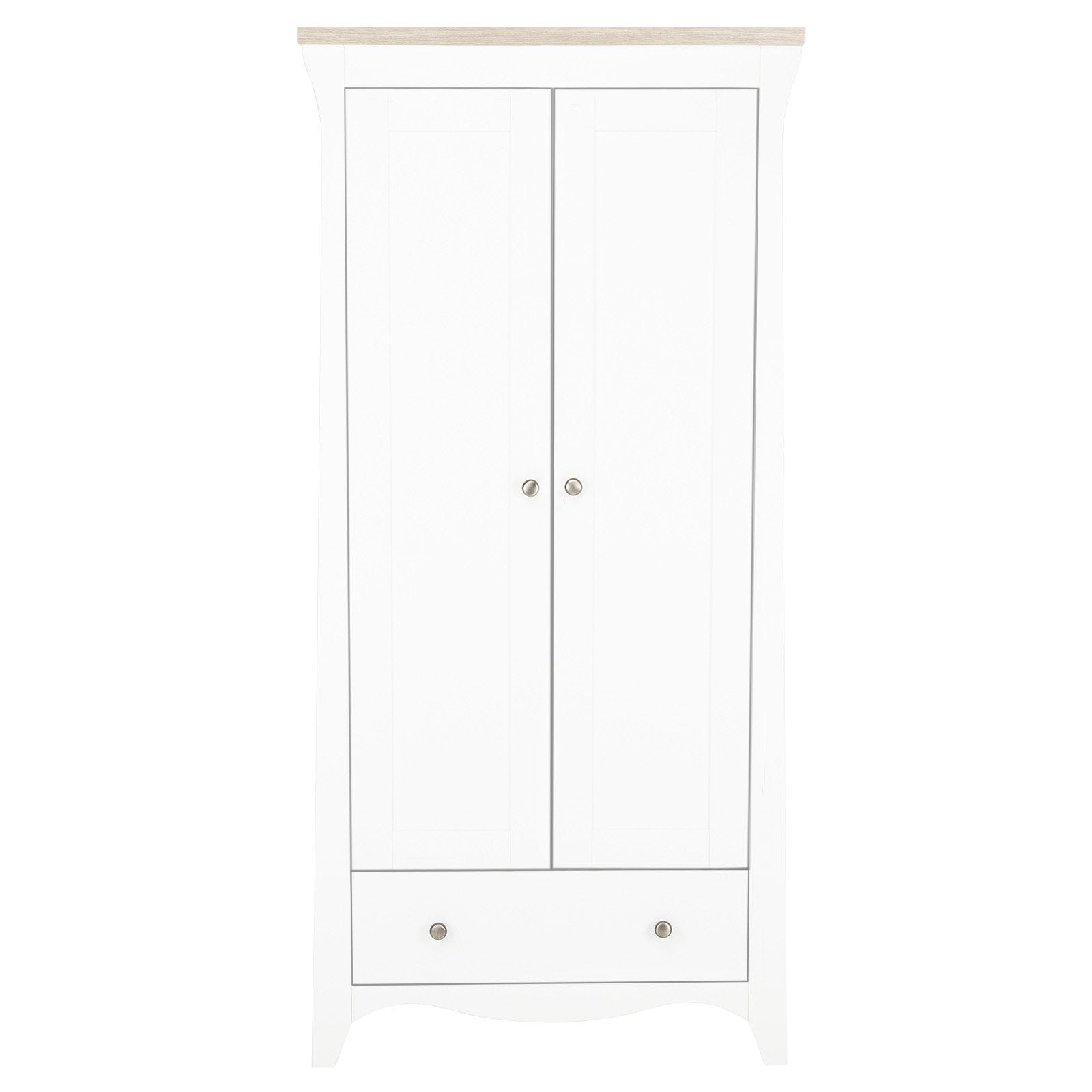 - Clara wardrobe in white and ash has a stylish driftwood ash trim on the top