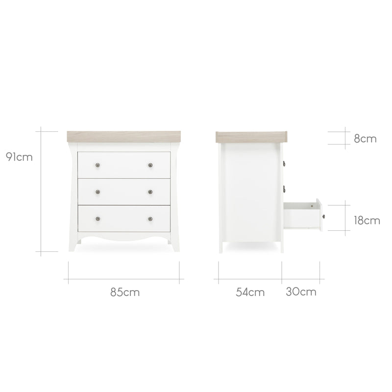 The Clara 3 drawer dresser & changer - L85 x W54 x H91cm