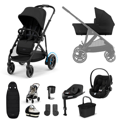 The CYBEX eGazelle S Pushchair + Cloud G Luxury Bundle in Moon Black will have you covered from day one. With everything you need from birth to approx. 4 years old, with siblings close in age or even twins you'll enjoy complete peace of mind.