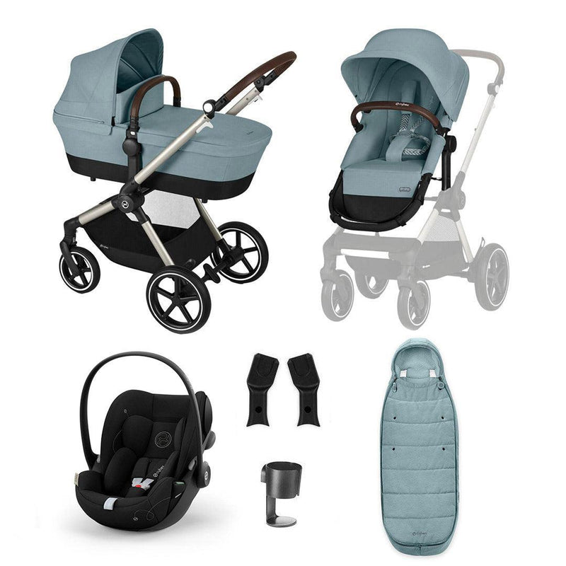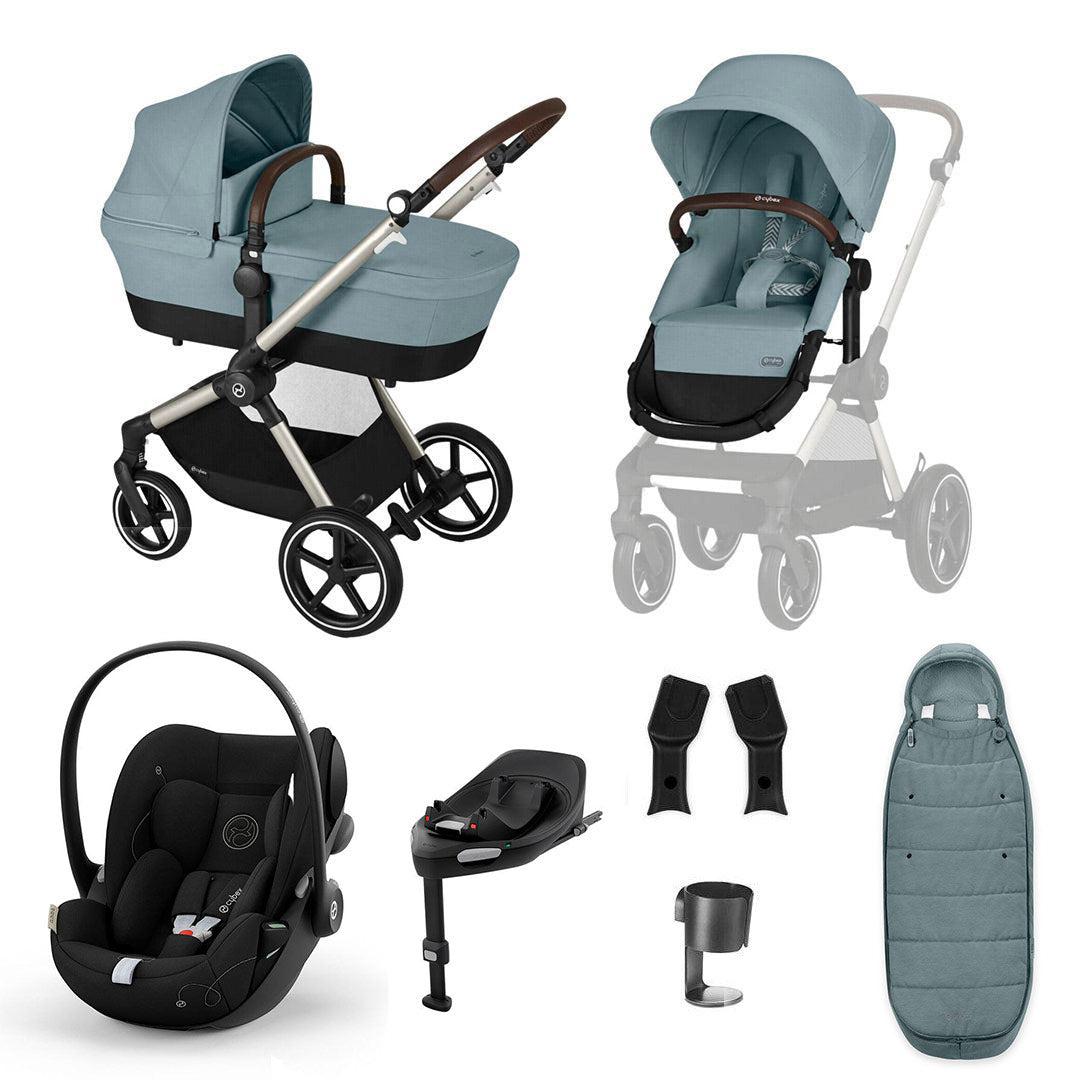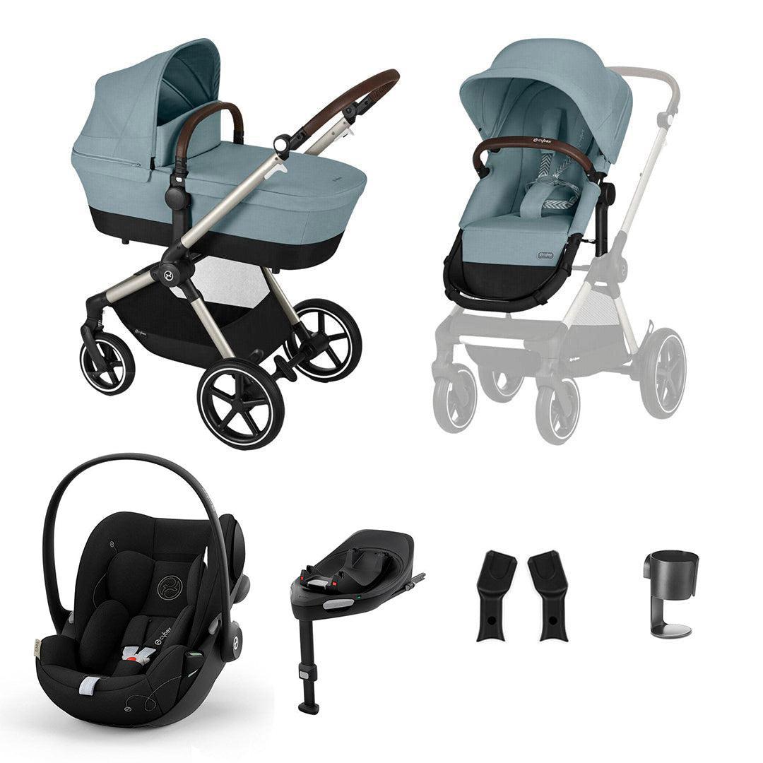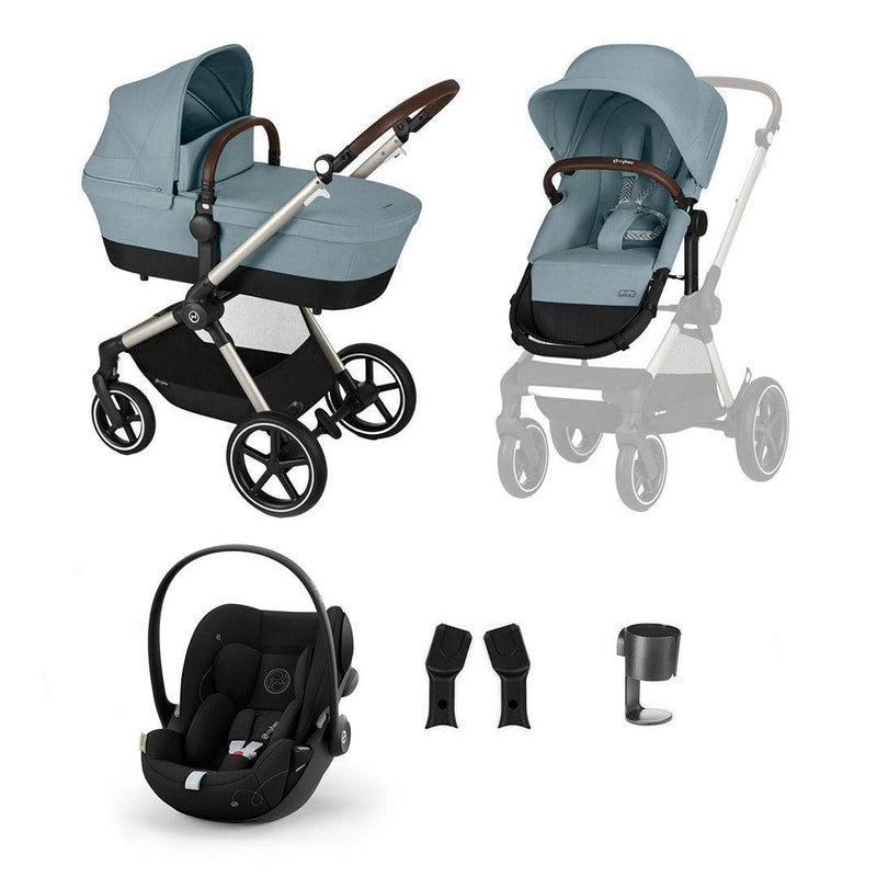 The CYBEX EOS Lux Luxury Bundle in Sky Blue includes the EOS Lux 2-in-1 pushchair, CYBEX Cloud G Car seat and base with an optional Gold footmuff. This bundle is made for everyday life, from their very first day until they can walk on their own two feet.