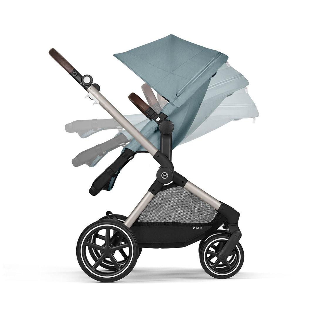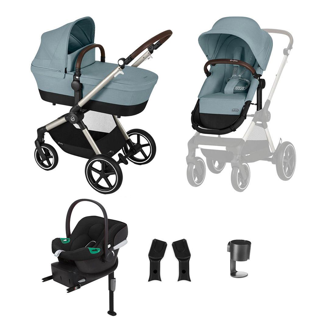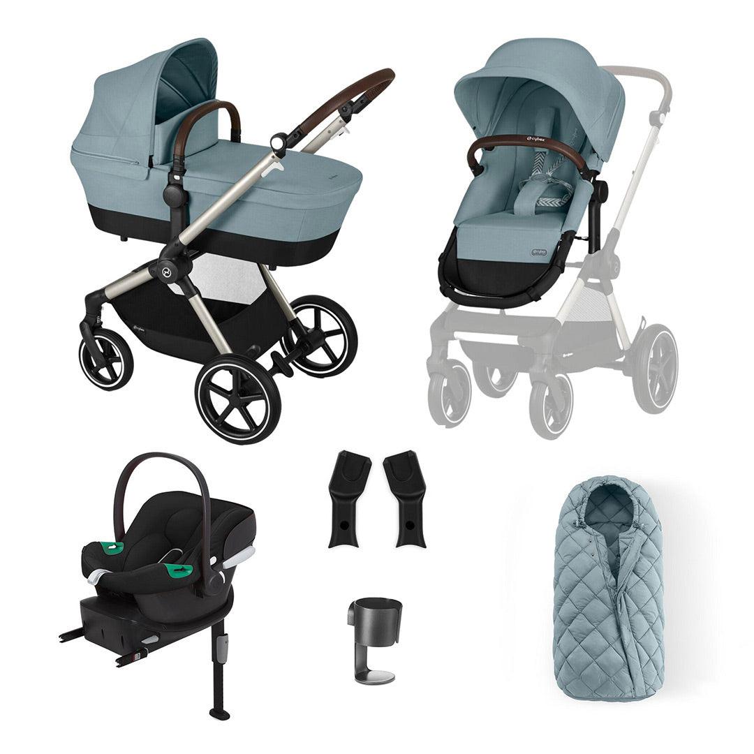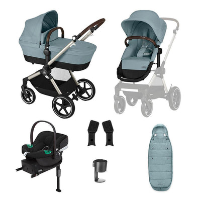 The CYBEX EOS Lux Luxury Bundle in Sky Blue includes the EOS Lux 2-in-1 pushchair, CYBEX Aton B2 Car seat and base with an optional Snogga 2 or Gold footmuff. This bundle is made for everyday life, from their very first day until they can walk on their own two feet.