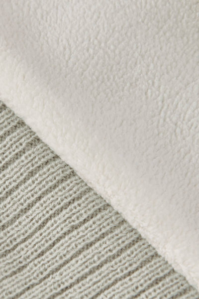 Close-up of grey ribbed knit fabric and soft white fleece lining of Geo Thermal Grey children&