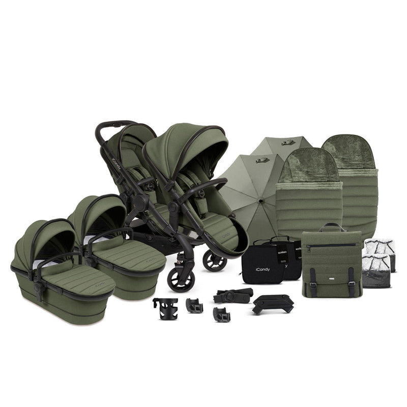 Discover the world of seamless parenting with the Peach 7 Twin Complete Bundle in Ivy. As the quintessential pushchair for first-time parents of twins, this luxurious twin ready pushchair is meticulously engineered to cater to both your needs and those of your babies. Crafted with care, its modern premium knitted jersey fabrics and elegant design offer unparalleled comfort for your little one and style for you.