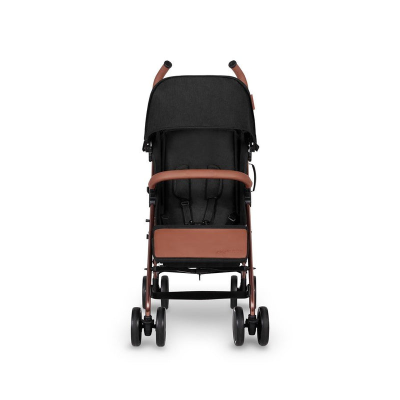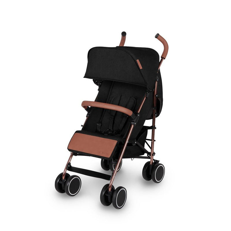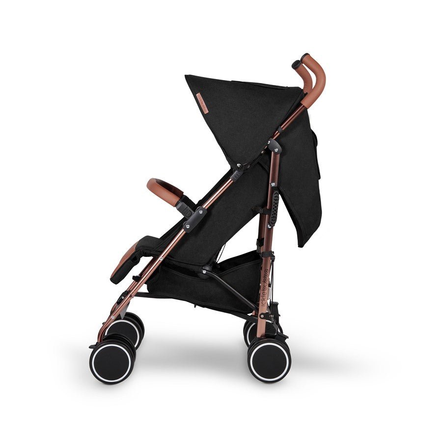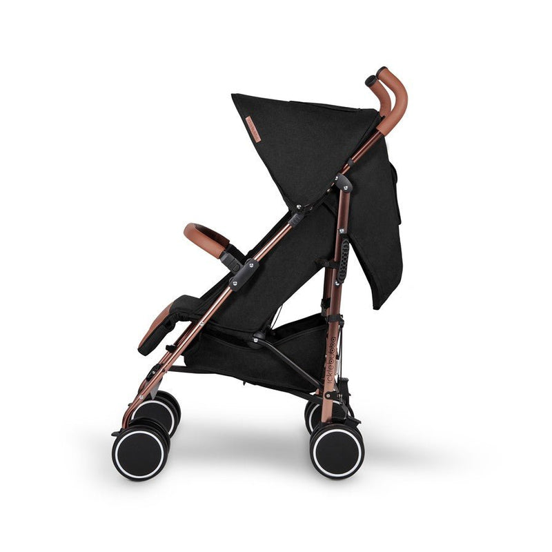 Ickle Bubba Discovery MAX lightweight stroller in rose gold and black with leatherette handles and adjustable safety straps