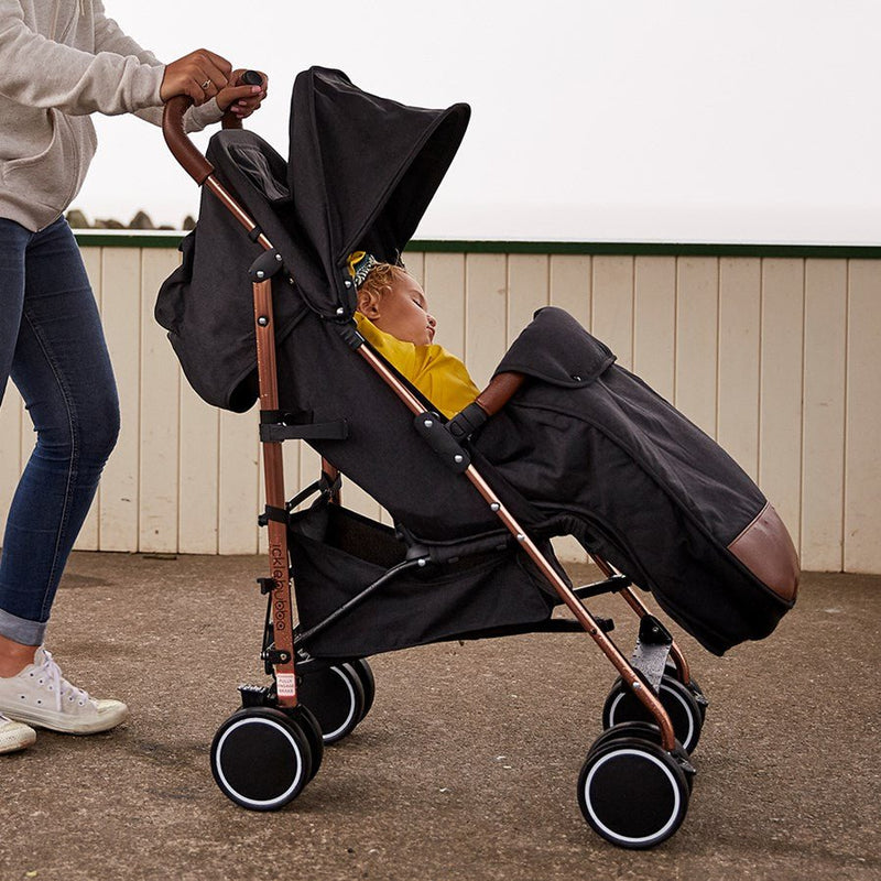 Ickle Bubba Discovery MAX stroller in rose gold and black with luxury quilted seat liner and footmuff, lightweight and compact for everyday use